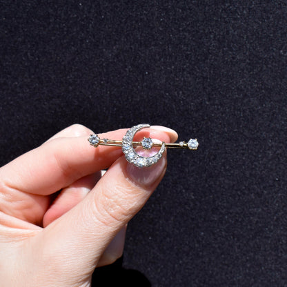 Vintage Crescent Moon 9ct Gold Brooch Pin | Victorian Style